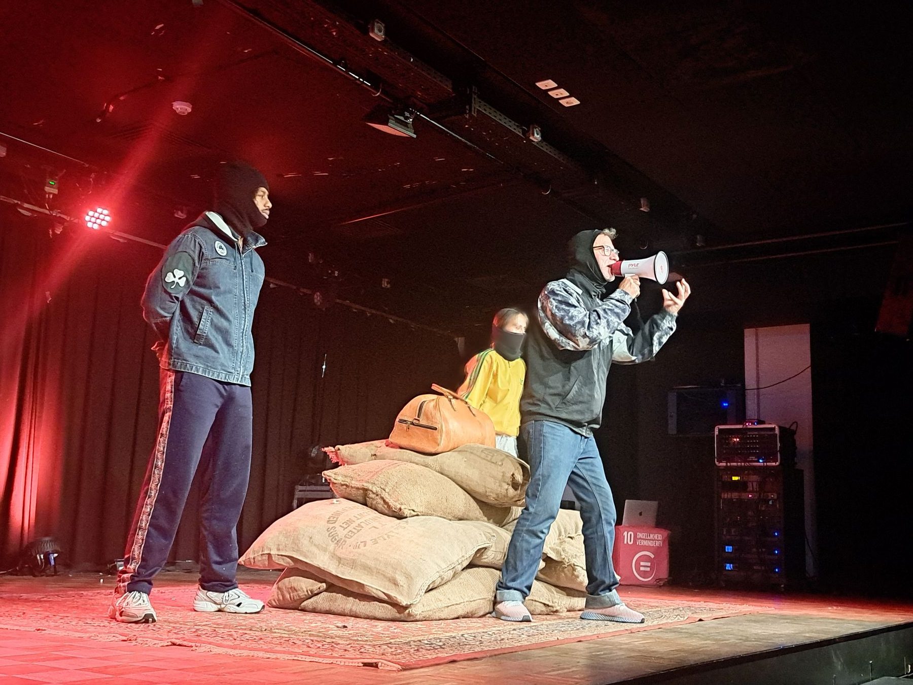 De Week van de Fair Trade werd afgesloten met een voorstelling In Brussel, waar het stuk werd gebracht voor het publiek van 2 Brusselse jeugdhuizen.
