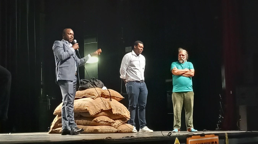 Na de voorstelling konden de leerlingen vragen stellen aan Eric Braun, vrijwilliger bij Oxfam-Magasin du Monde in Braine-le-Comte, aan Yeo Moussa, directeur van de cacaocoöperatie Yeyasso in Ivoorkust, en aan Dieudonné Lawako Sow, medewerker bij het Trade for Development Centre van Enabel.
